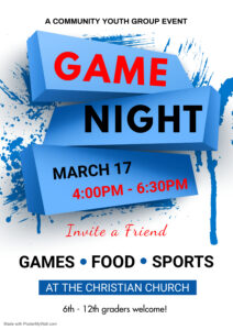 YOUTH MINISTRIES WEEKLY Youth Sunday School Class 9:30 - 10:15 UPCOMING EVENTS Community Youth Group Game Night March 17, 2024 Participate with the Community Youth Group Attend Summer Camp at Camp Table Rock